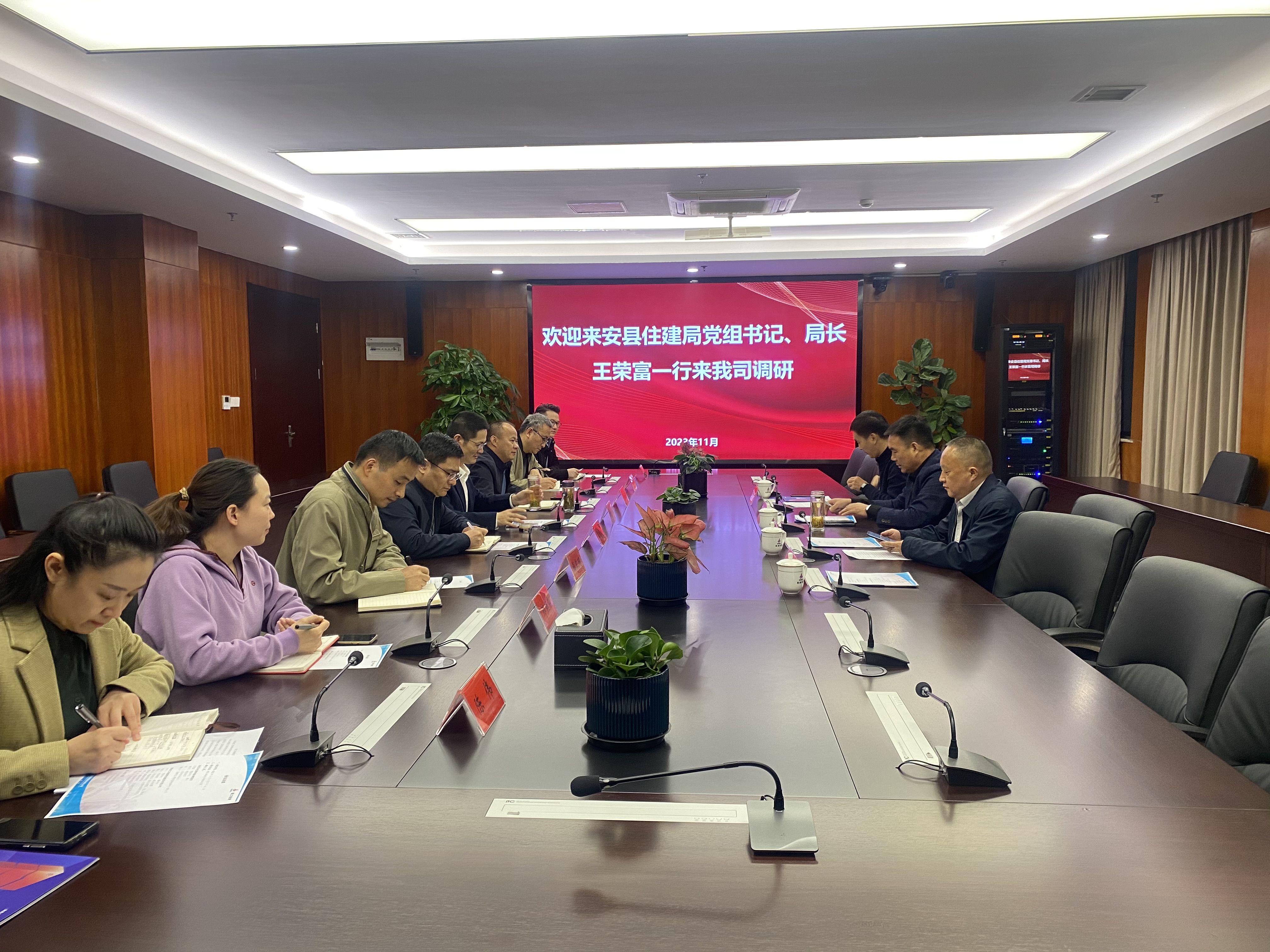 11月7日下午,來安縣住房與城鄉建設局黨組書記、局長王榮富一行來我司訪談調研,建工檢測黨委書記、董事長方申柱熱情接待。