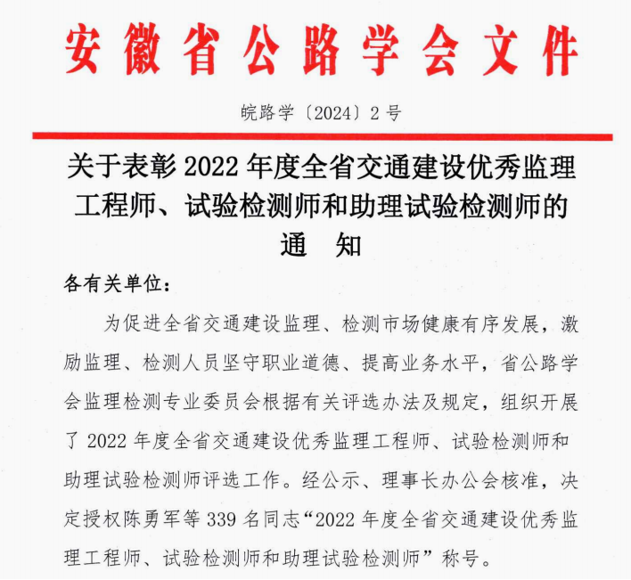 喜訊!建工檢測路港通公司員工榮獲2022年度全省交通建設(shè)“十佳檢測工程師”“優(yōu)秀試驗檢測師”稱號