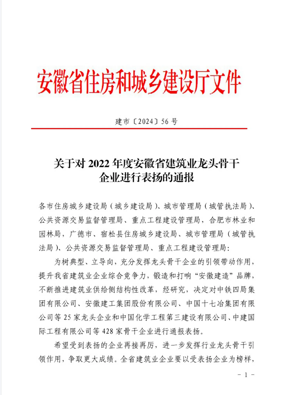 近日,安徽省住房和城鄉建設廳發布了“關于對2022年度安徽省建筑業龍頭骨干企業進行表揚的通報”,建工檢測及所屬子公司環通檢測榮登“骨干企業”榜單。