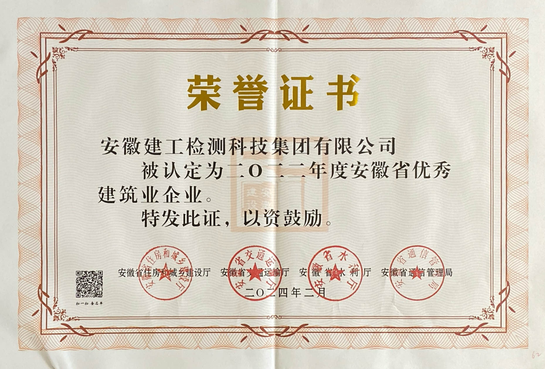 “安徽省優秀建筑業企業”是由省住房和城鄉建設廳、省交通運輸廳、省水利廳、省通信管理局聯合組織開展的全省優秀建筑業企業認定評選活動。旨在通過對優秀企業的表彰來弘揚企業家精神,打造“安徽品牌”,推動安徽建筑業高質量發展。