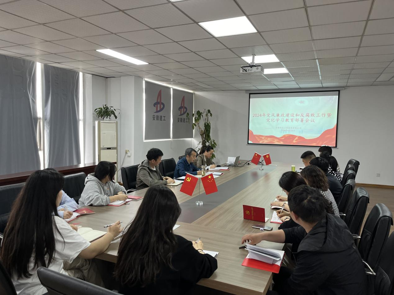 4月22日上午,安建品創黨支部召開學習教育動員部署會。會議傳達了建工檢測2024年黨風廉政建設和反腐敗工作會議暨黨紀學習教育動員部署會會議精神,并提出要求:一要認真對照黨紀學習教育實施方案,不折不扣做好貫徹落實;二要多措并舉推動學習教育走深走實,依托理論學習、警示教育等方式,持續加強宣傳引導,確保學習教育內容入腦入心。