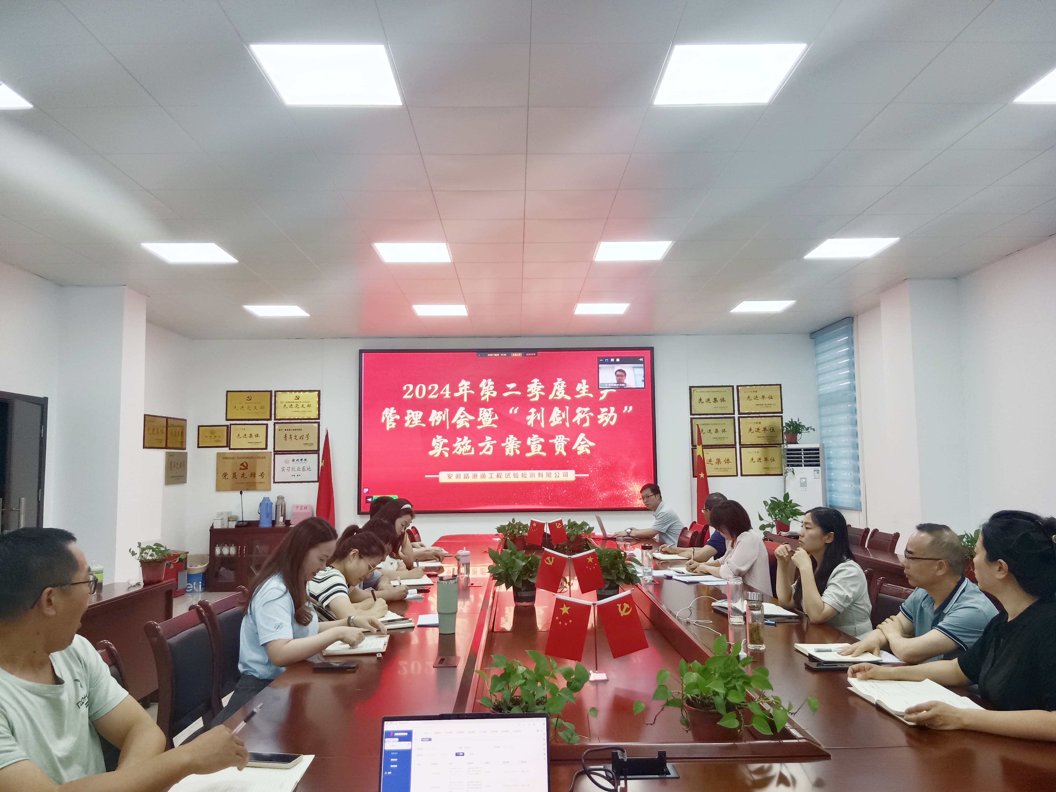 近日,路港通公司召開2024年第二季度生產經營會暨“利劍行動”方案宣貫會,路港通班子成員、職能部門負責人、各授權工地試驗室負責人參加會議。