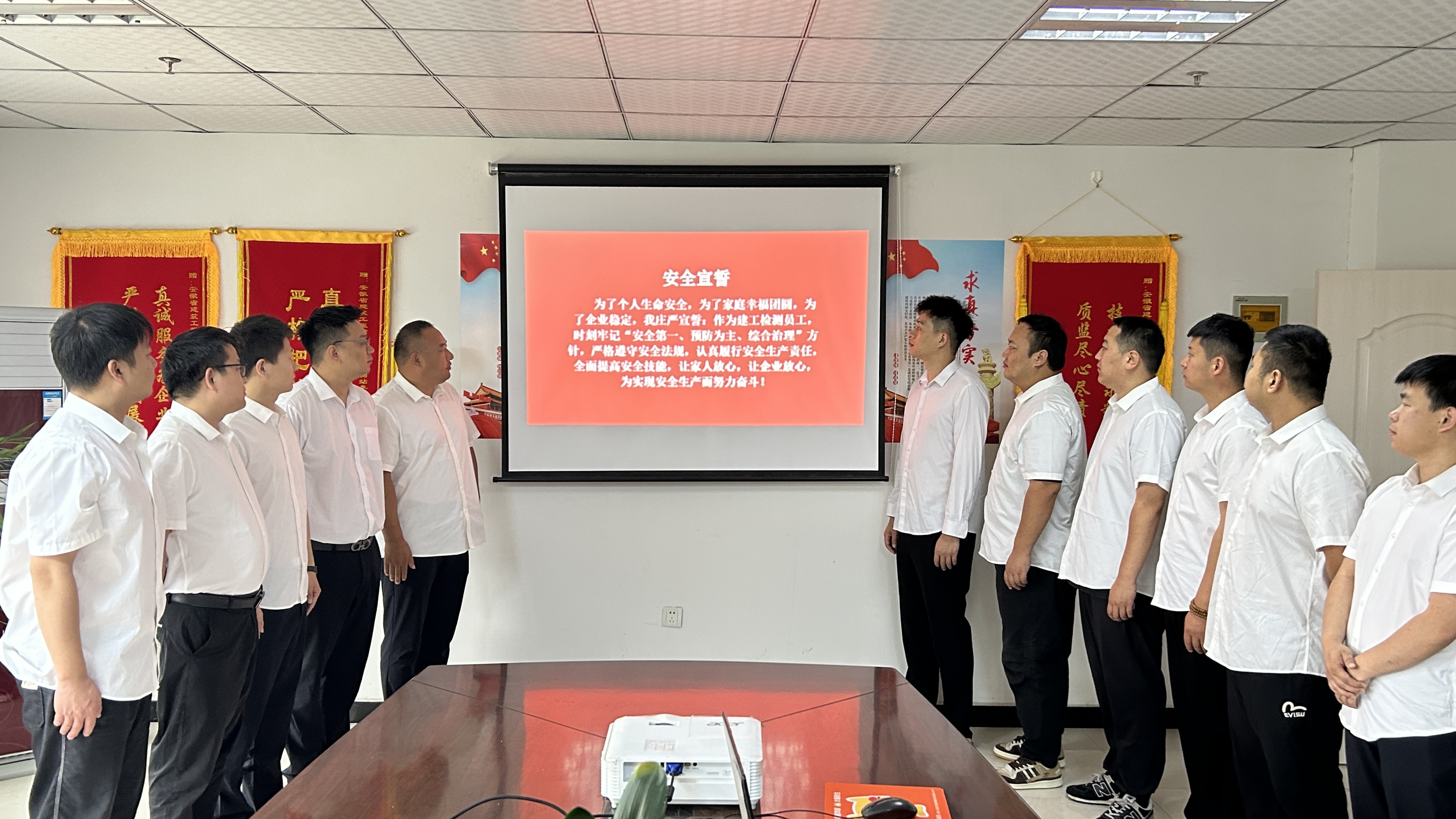 啟動儀式上,阜陽分站黨支部書記、站長屈俊云傳達并帶領分站員工學習了建工檢測2024年“安全生產月”啟動會會議精神,集中觀看了“2024年全國安全生產月公益宣傳片”及《安全生產責任在肩》等警示教育片。隨后,與會全體人員共同進行安全宣誓,將時刻緊繃安全生產這根弦,做好自己的第一責任人。