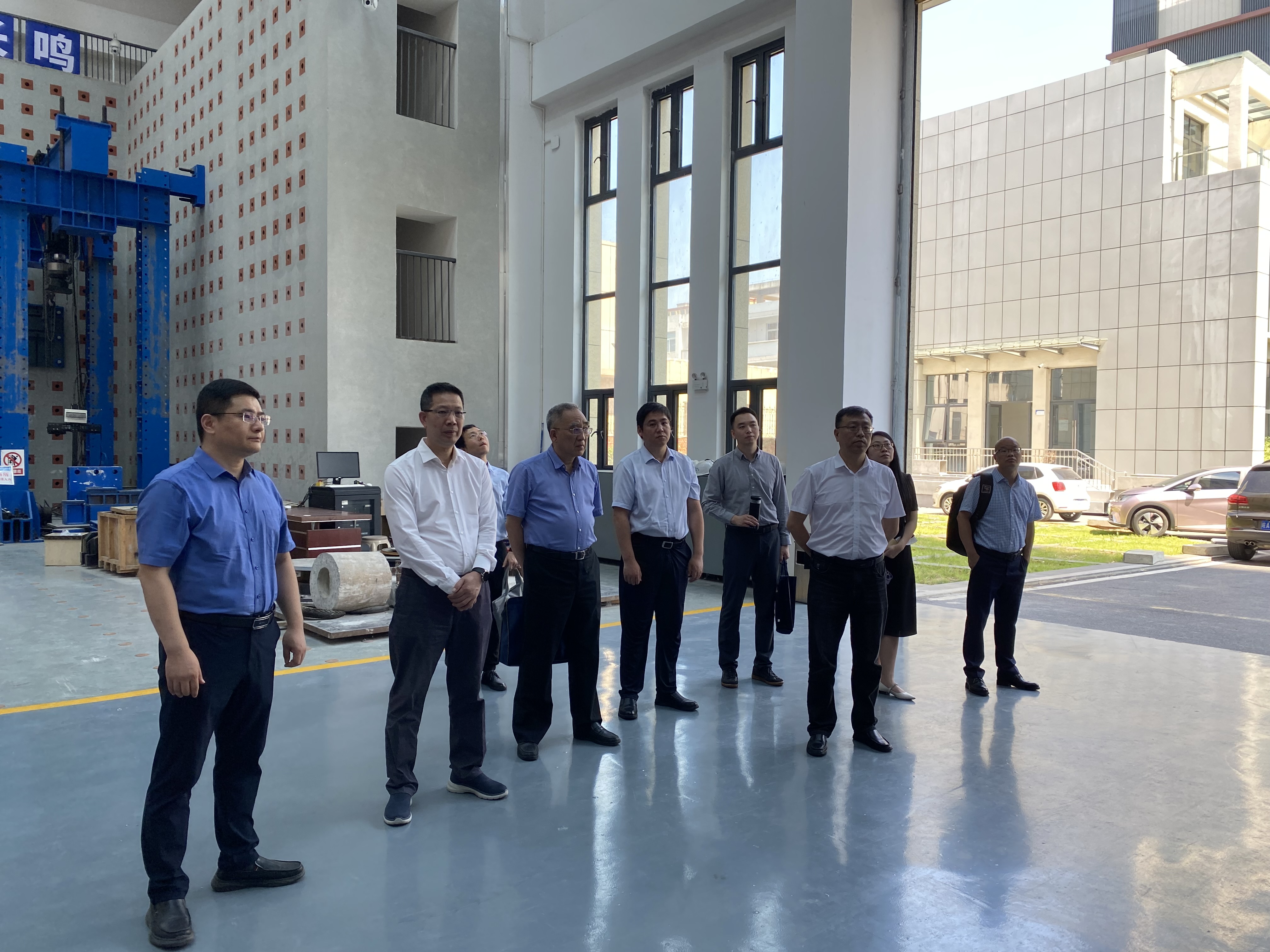 會前,施小東一行還參觀了檢測實驗室。浙江省國資國企研究院有限公司、浙江省建筑科學設計研究院有限公司、建工集團高新技術研究院以及建工檢測相關負責同志參加本次交流。