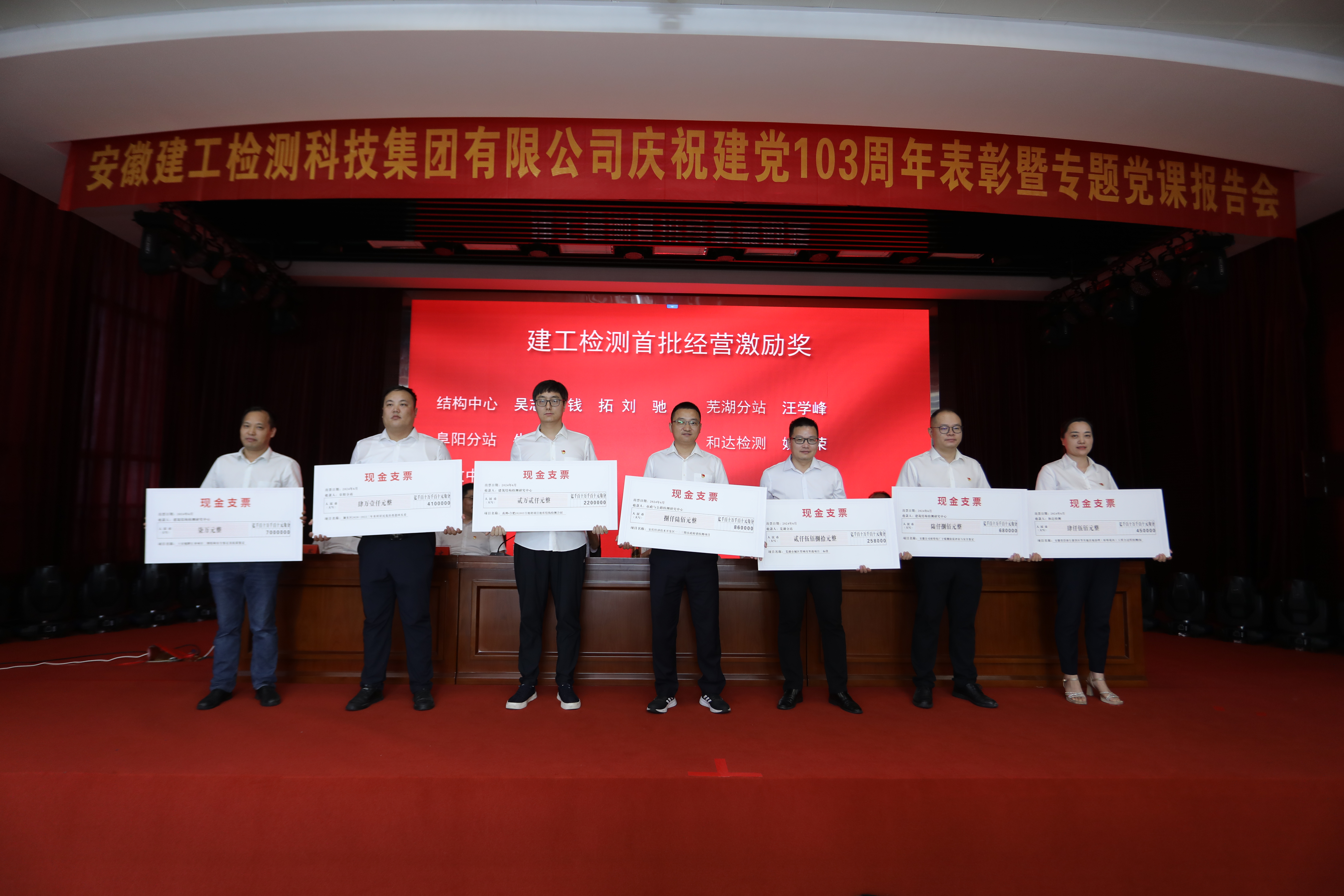 大會對獲得建工檢測2023年度先進基層黨組織、優秀黨務工作者、優秀共產黨員以及首批經營激勵獎進行了集中表彰,先進代表們進行了交流發言。