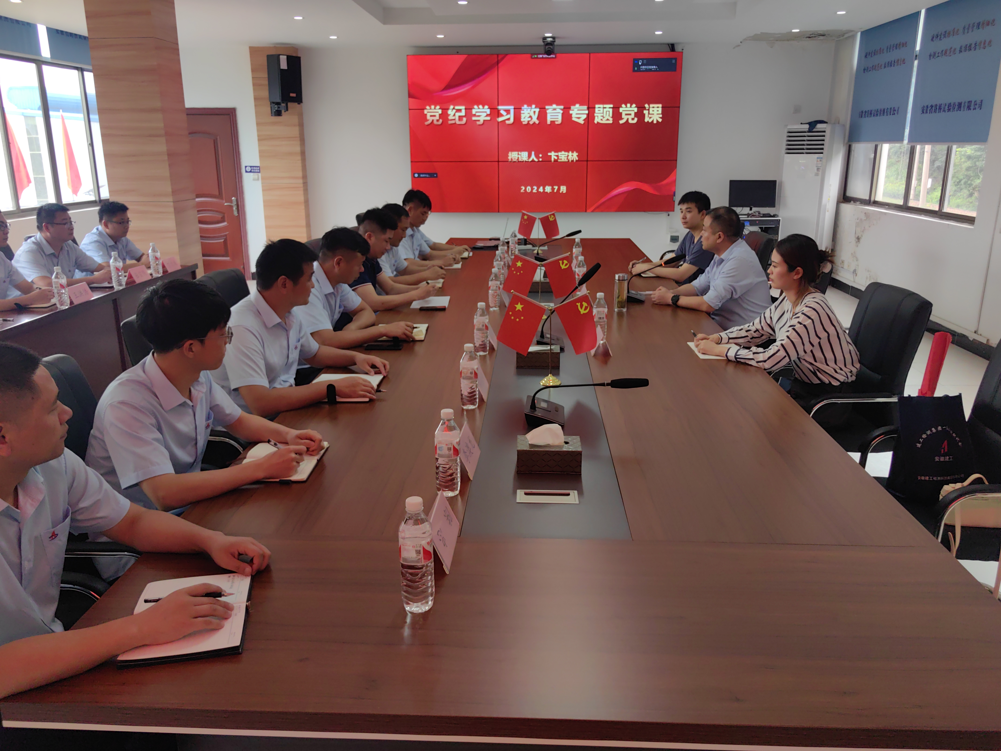 為認真學習領會《中國共產黨紀律處分條例》,引導黨員干部學紀、知紀、明紀、守紀,推動黨紀學習教育深入開展,7月15日下午,建工檢測黨委委員、副總經理卞寶林赴路橋檢測宣涇高速中心試驗室所在的第二黨支部講授黨紀學習教育專題黨課。建工檢測黨工部張緣、夏翔宇陪同參會。路橋檢測工會主席李立,宣涇高速中心試驗室、涇青高速中心試驗室負責人、黨員及技術骨干現場參會,路橋檢測領導班子成員、中層正副職、黨員視頻分會場參會。