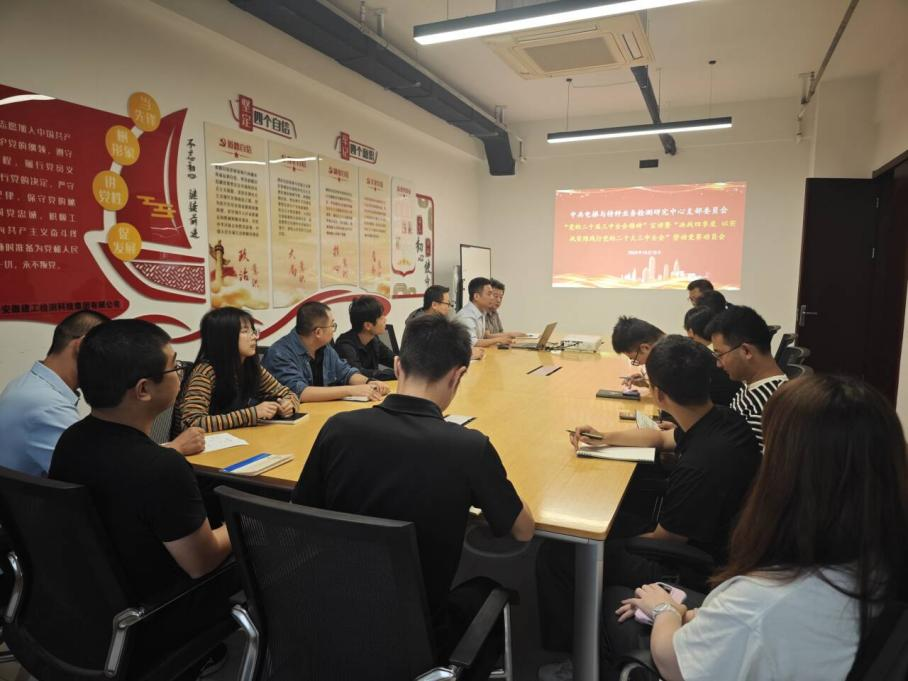 近日,地基中心黨支部組織開展黨的二十屆三中全會精神宣講,中心班子成員、全體黨員、統戰成員和職工代表參會。支部書記崔偉結合建工檢測改革發展實際,對全會精神進行系統闡述和深入解讀。