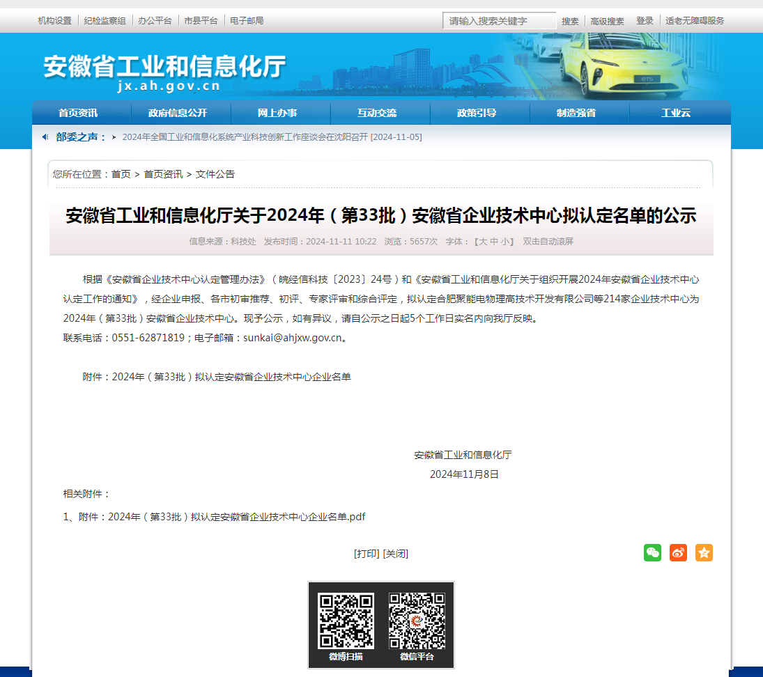 近日,安徽省工信廳對2024年(第33批)安徽省企業(yè)技術中心擬認定名單進行公示,經(jīng)企業(yè)申報、各市初審推薦、初評、專家評審和綜合評定等程序,建工檢測所屬子公司安徽省路橋試驗檢測有限公司成功入選。