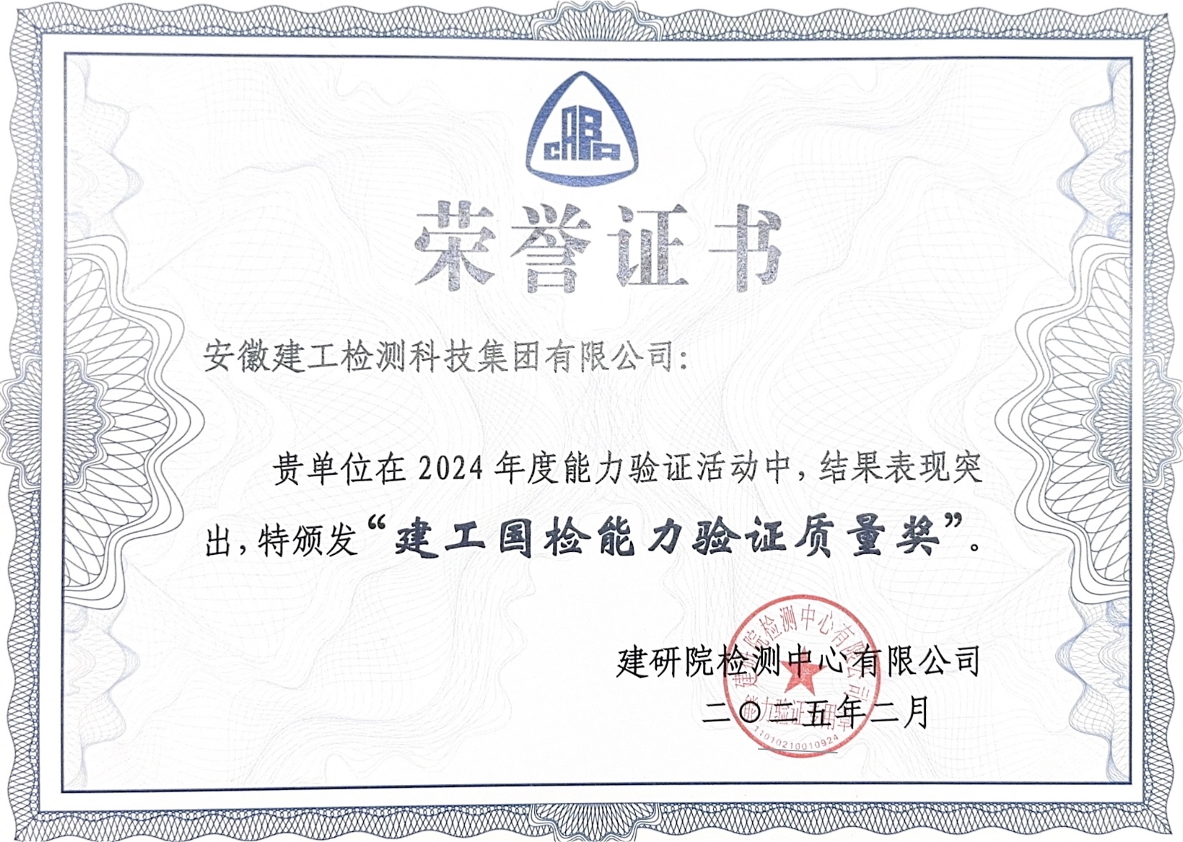 建工檢測(cè)獲“建工國檢能力驗(yàn)證質(zhì)量獎(jiǎng)”