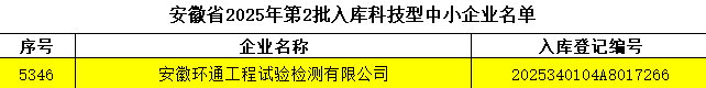 近日,安徽省科學技術廳正式公布2025年第2批入庫科技型中小企業名單,建工檢測公司所屬環通公司再度成功入選。