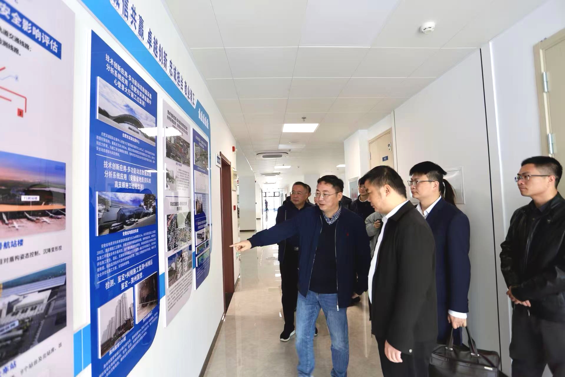 合肥工業大學土木與水利工程學院院長、研究院學術委員會主任王靜峰,建工檢測黨委委員、副總經理、工會主席、研究院學術委員會副主任郭楊,安徽建科黨委委員、副院長、研究院副院長馬良浮,合肥工業大學土木與工程學院副院長高鵬,高新院科研管理部部長秦琳,結構檢測研究中心主任、研究院副院長張亞明,合肥工業大學土木與工程學院建筑工程系副研究員于天昊,高新院科研管理部高級主管、博士徐瑋榕,安徽品創城市更新科技有限公司總經理李葛葛出席揭牌儀式。
