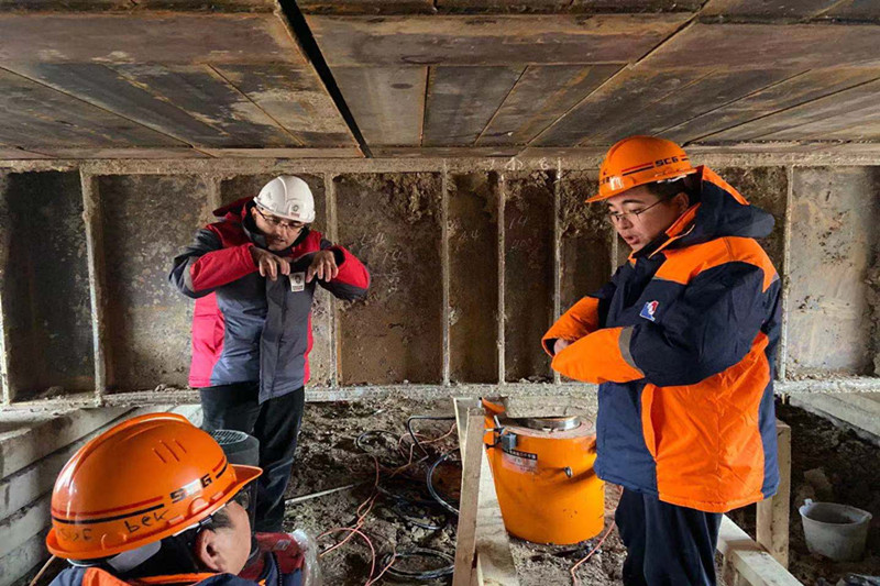 二站巖土分院作為承接單位,對該項目高度重視,前期與上海建工就技術(shù)問題進行了充分溝通,制定了全面而細致的檢測方案,在當?shù)刂谱髁虽摿骸⑴渲氐却笮驮O(shè)備,以確保檢測現(xiàn)場能夠順利實施,同時于2019年12月外派強光玉、陳明兩位優(yōu)秀項目經(jīng)理長駐現(xiàn)場提供專業(yè)檢測服務(wù)。同志們克服氣候嚴寒、語言不通、水土不服的困難,不僅順利啟動了檢測工作,而且一個月內(nèi)完成了總工作量的50%,給總包單位節(jié)約了工期,以嚴謹?shù)墓ぷ髯黠L(fēng)和優(yōu)質(zhì)的服務(wù)展現(xiàn)了安徽建科質(zhì)檢二站的風(fēng)采,得到了現(xiàn)場各方主體單位的一致好評,樹立了安徽建科人敬業(yè)奉獻、艱苦奮斗的良好職業(yè)形象。