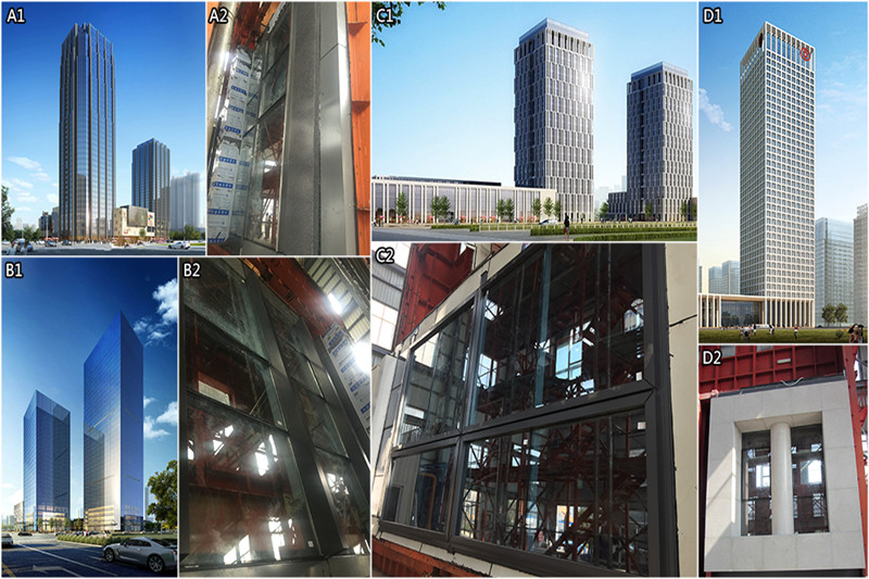 自 2015 年成立以來,門窗幕墻所一貫秉持質量優先,服務社會的理念,創造了良好的社會效益與經濟效益。依托建筑門窗節能物理實驗室現有設備與技術儲備,所內業務不斷擴大。目前,門窗幕墻節能檢測研究所可承接建筑門窗幕墻物理性能檢測(圖 2A、C)、節能檢測(圖 2D)、建筑幕墻配件、輔材檢測、建筑玻璃檢測、既有門窗幕墻安全檢測鑒定、建筑整體氣密性檢測等。幕墻所勇于拼搏,挑戰自我,承接了一系列難度高、工期緊、體量大的門窗幕墻檢測與安全鑒定工作項目(圖3、圖4)。