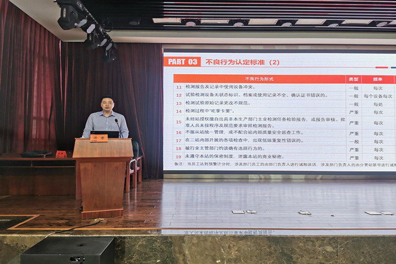 為落實院七屆五次職代會精神,引導(dǎo)員工增強職業(yè)道德意識,恪守“誠信為本、操守為重”的行為準則。4月30日上午,二站在23樓大會議室舉辦職業(yè)道德與行為準則專題講座。二站各檢測部門負責(zé)人、項目負責(zé)人及三年內(nèi)入職員工等110余人參加培訓(xùn)。二站黨總支書記、站長劉林軍出席培訓(xùn)會并作動員講話。培訓(xùn)會由院人力資源部部長徐文正主持。