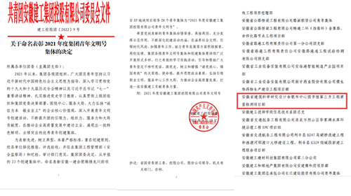 近日,從集團傳來喜訊,我院合肥市中心圖書館第三方工程質量檢測項目部青年集體被安徽建工控股團委授予“2021年度安徽建工集團控股有限公司青年文明號”榮譽稱號。
