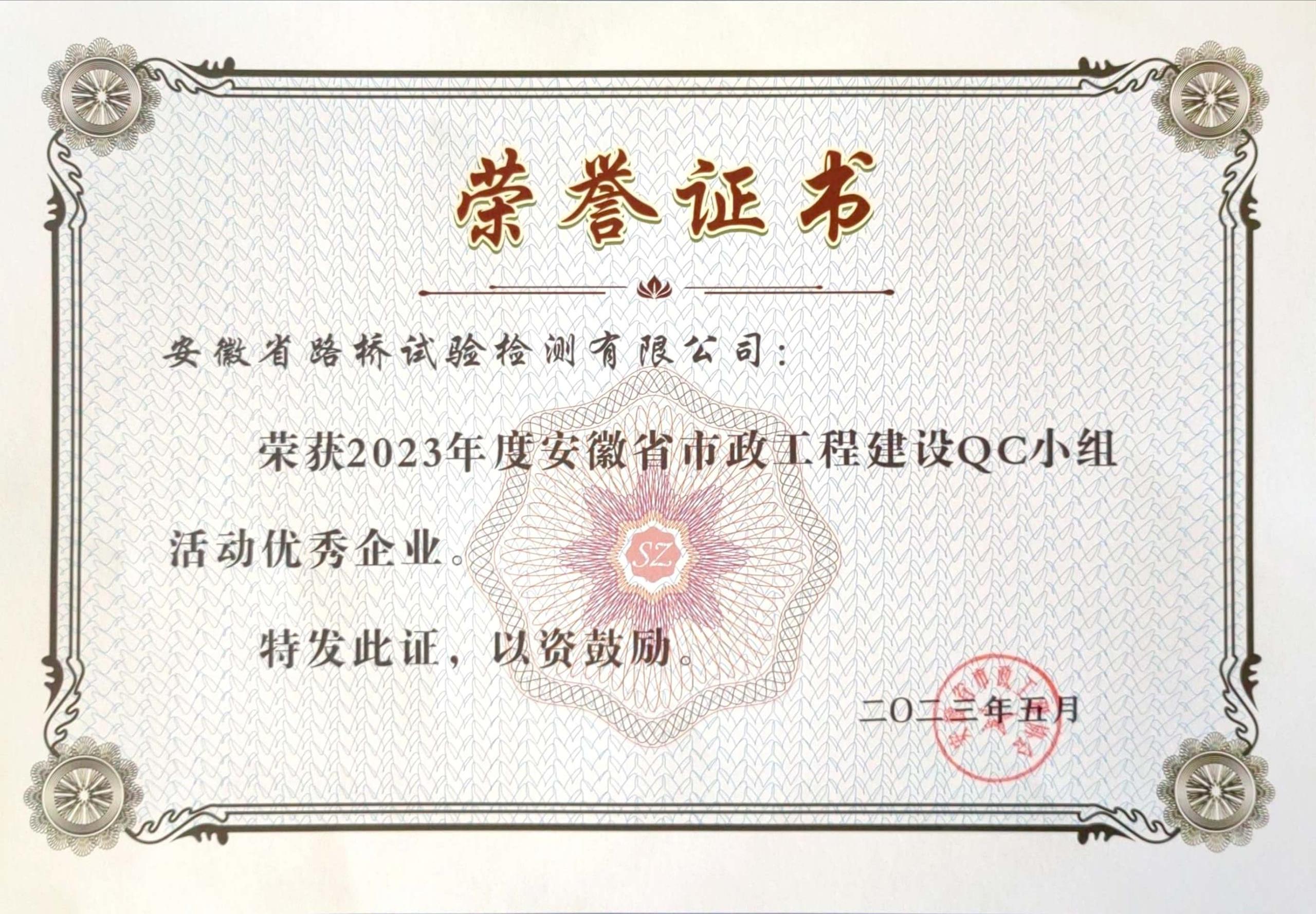 近日,從安徽省2023年度市政工程建設優秀QC組活動成果交流會上傳來喜訊。安徽省路橋試驗檢測有限公司在本次評審中,榮獲“2023年度安徽省市政工程建設QC組活動優秀企業”;檢測公司選送的四項創新科技成果分別獲得一等獎3項、二等獎1項。