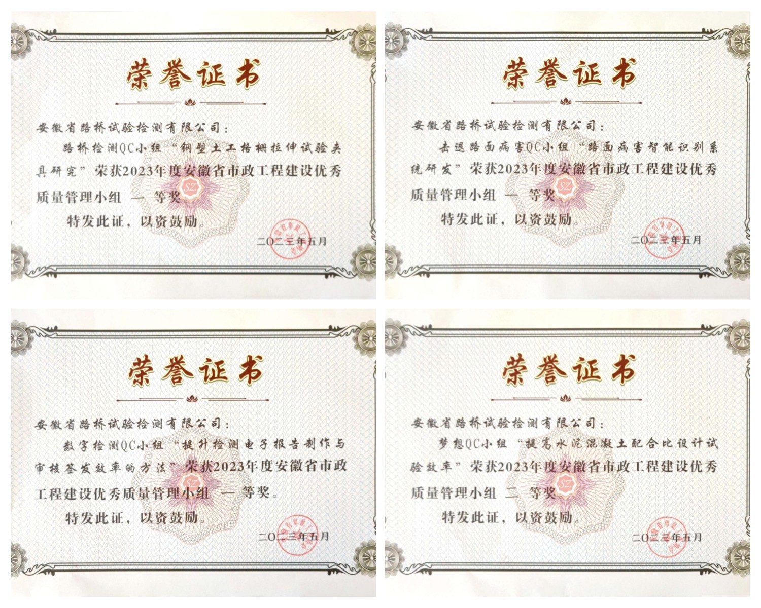 安徽省路橋試驗檢測有限公司喜獲2023年安徽省QC小組多項榮譽